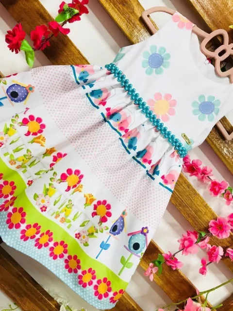 Vestido jardim flores e casinhas pérolas infantil