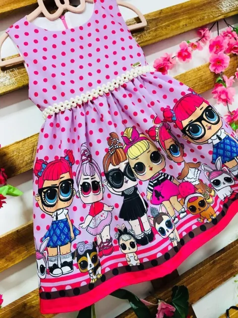 - > Vestido lol roxo poa rosa pérolas infantil