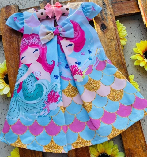 Vestido Sereia Verde e rosa modelo Manuella infantil