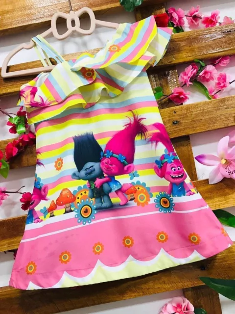 Vestido Trolls barra rosa babado infantil
